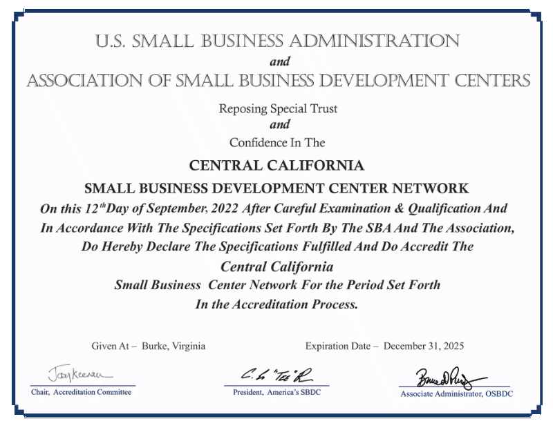 The Central California SBDC Network is an accredited member of America's SBDC.