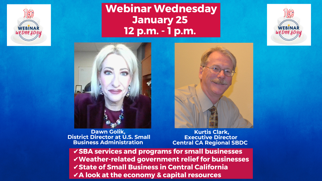 Kurtis Clark, executive director of the Central CA Regional SBDC network will also join the webinar. Clark will provide a “State of Small Business in Central California” that details the challenges and opportunities ahead in 2023 throughout the region.
