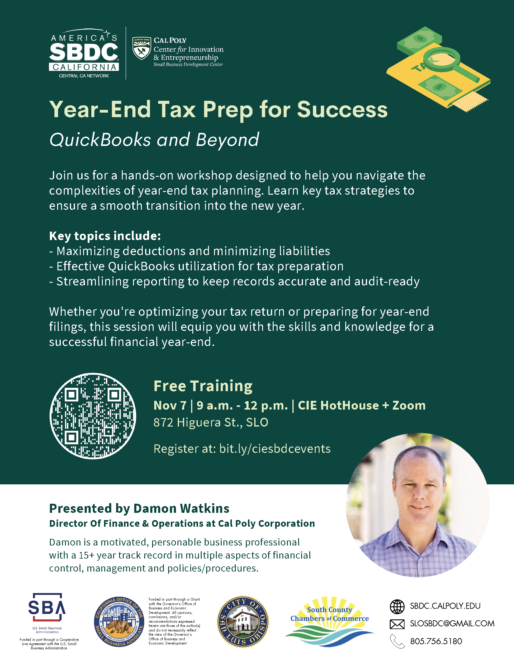 Join us for this informative workshop to navigate the complexities of year-end tax planning and reporting. In this hands-on session, we’ll explore key tax strategies that can maximize deductions, minimize liabilities, and ensure smooth financial transitions into the new year. We will also focus on effective utilization of QuickBooks for tax preparation and planning, providing you with practical tools to streamline your reporting and keep your records accurate and audit-ready. Whether you’re looking to optimize your tax return or simply prepare for year-end filings, this workshop will equip you with the knowledge and skills you need for a successful financial year-end.
