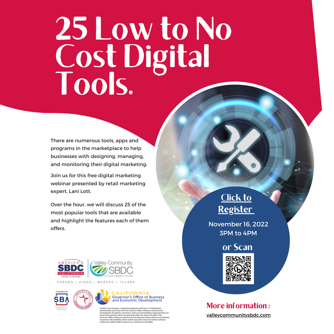Funded in part through a Cooperative Agreement with the U.S. Small Business Administration and a Grant with the Governor’s Office of Business and Economic Development. All opinions, conclusions, and/or recommendations expressed herein are those of the author(s) and do not necessarily reflect the views of the SBA or the Governor’s Office of Business and Economic Development. Reasonable accommodations for persons with disabilities will be made if requested at least two weeks in advance. Contact the California SBDC closest to you.